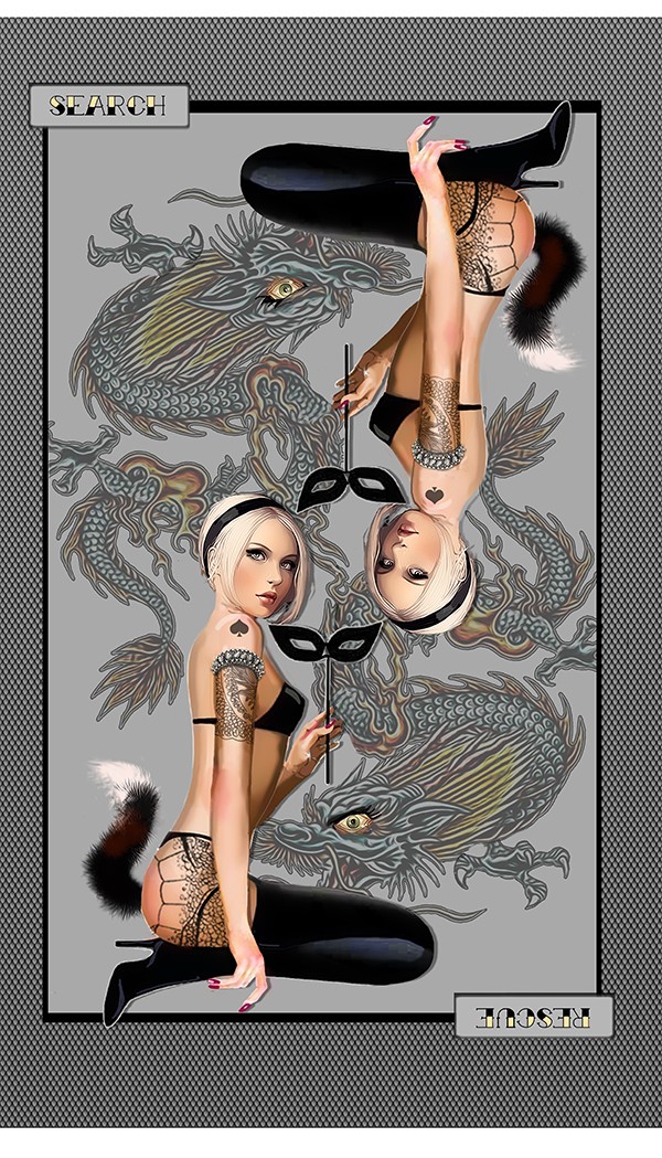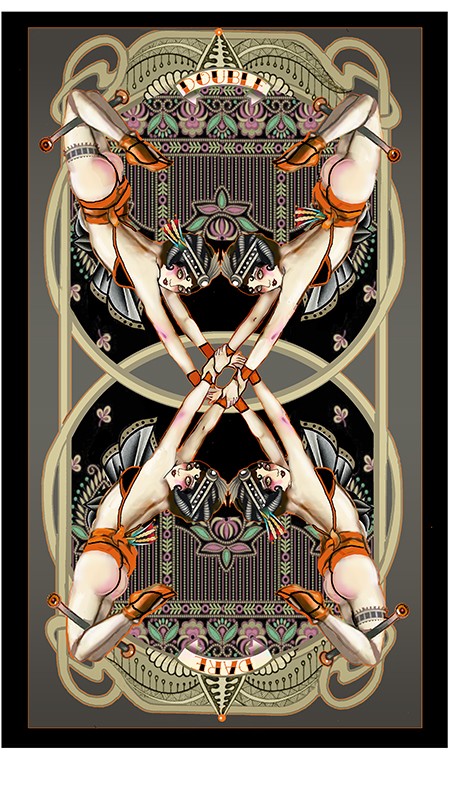 Each Image in the DOUBLE IMAGES Collection consists of symmetrical, reversible dual images.  Banners reveal meaningful messages to the viewer/reader.